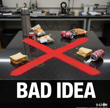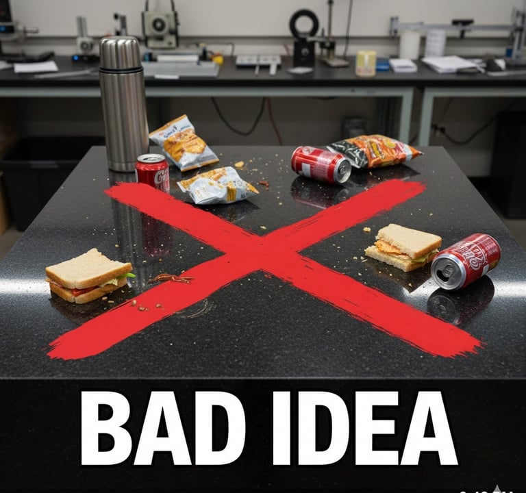 Surface plates must not be used as a countertop for storage or as a dining table for lunch.